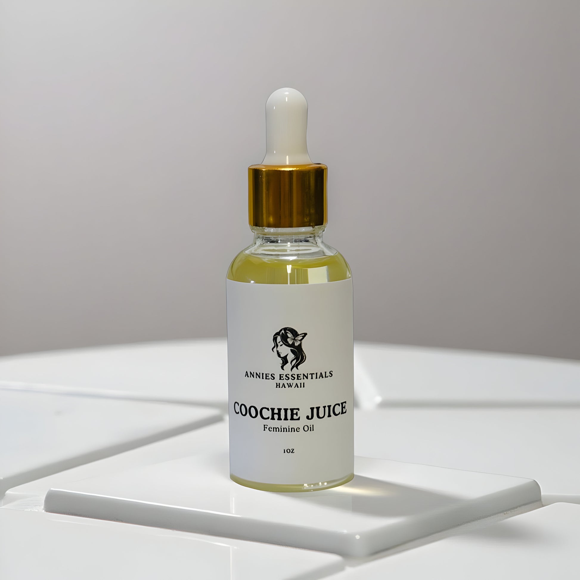COOCHIE JUICE Feminine Oil features a blend of potent oils that combat bacterial growth, alleviate discomfort, calm dryness and irritation, eliminates odor, and boosts sex drive. It also helps reduce menstrual cramps and is ideal for women in both premenopausal and postmenopausal stages. This oil can additionally be used as a lubricant as well.